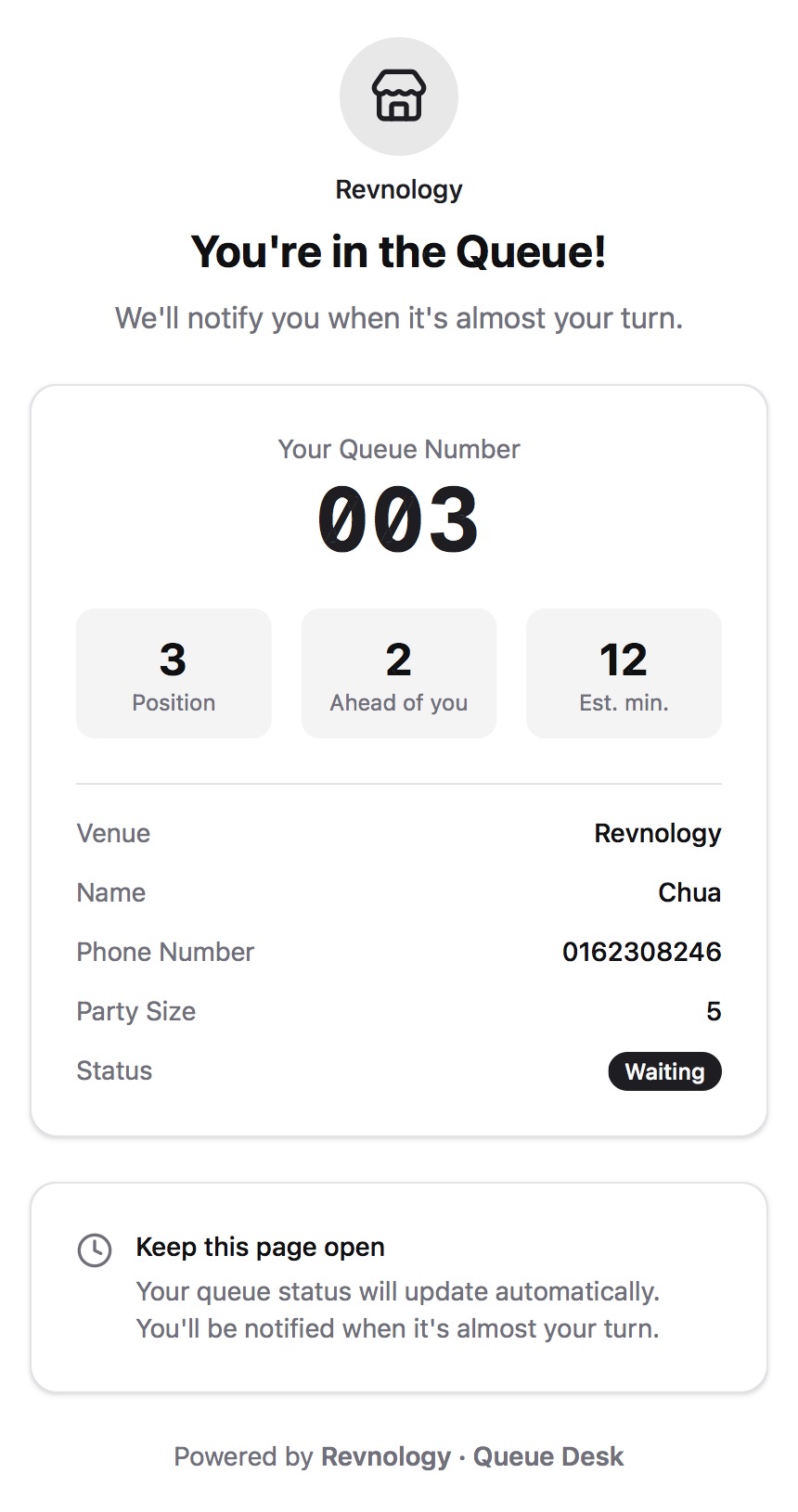 Monitor queue status instantly with live updates across all channels and devices.